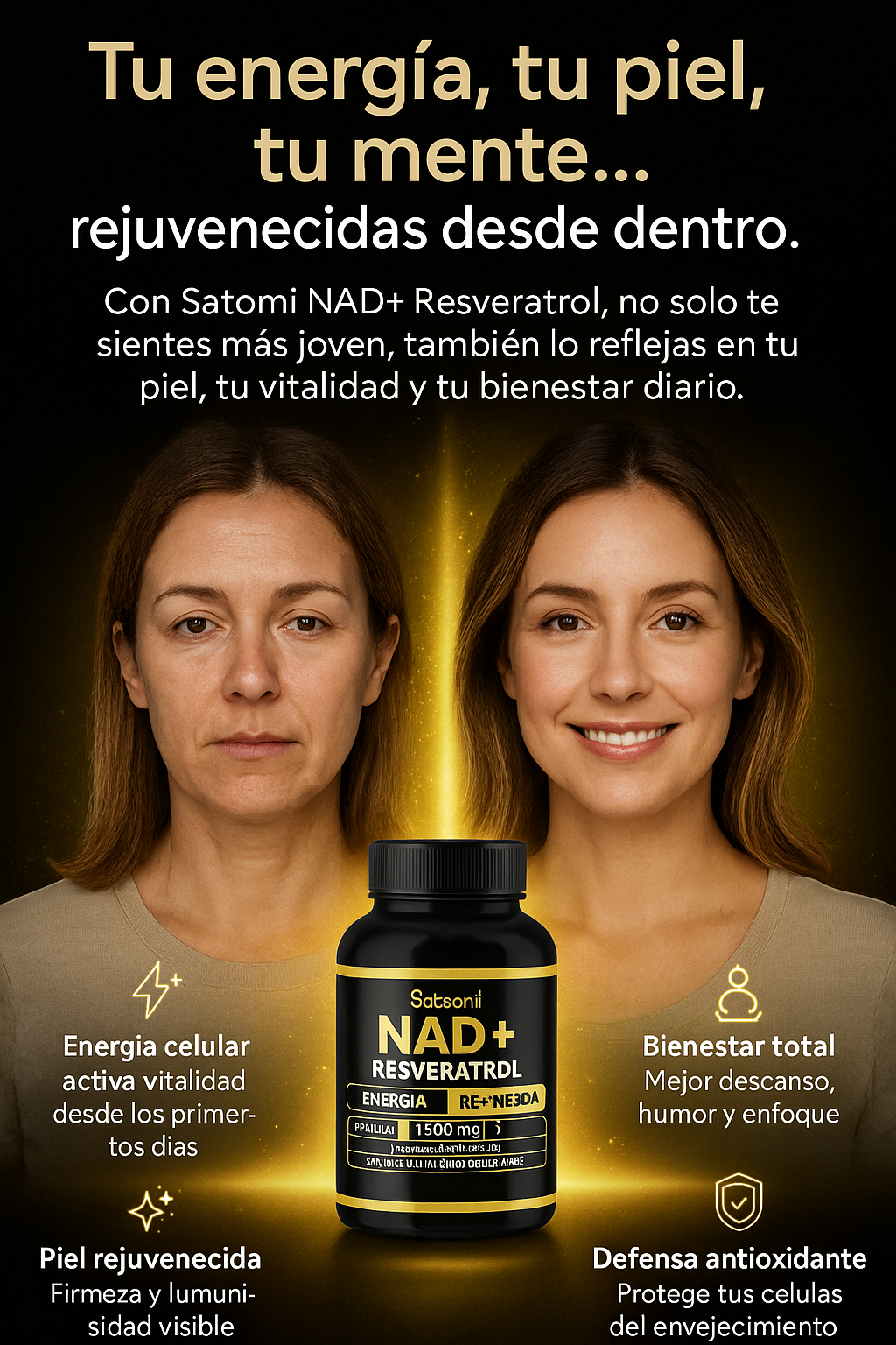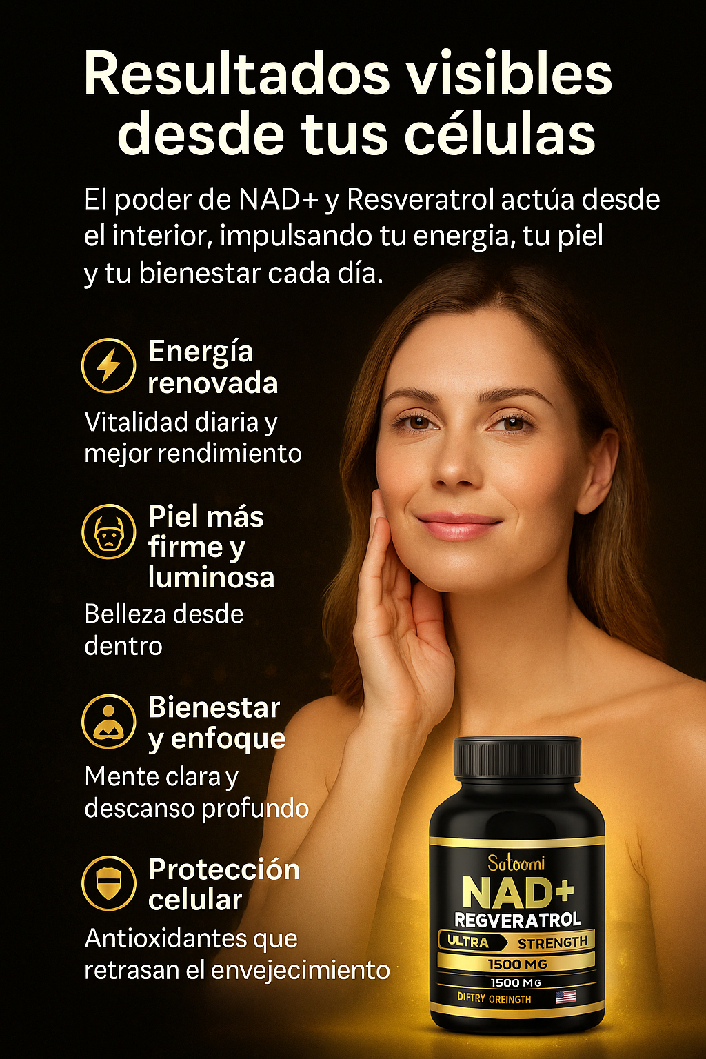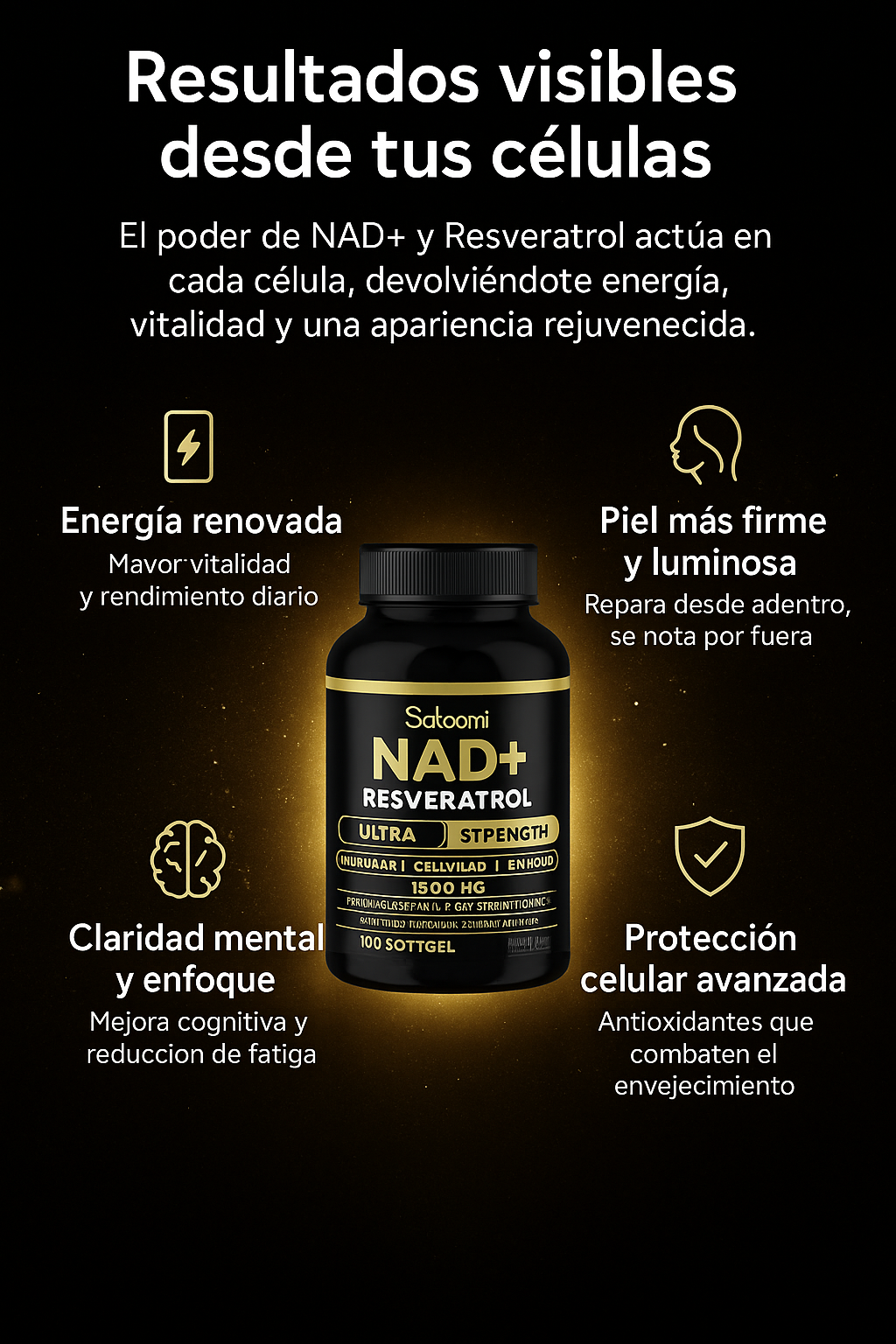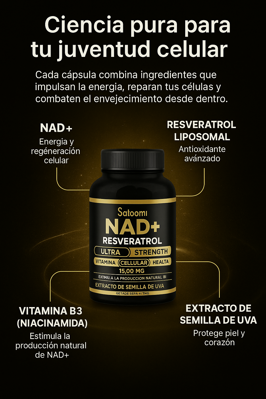 ✅ Fórmula avanzada con NAD+, Resveratrol Liposomal y B3.